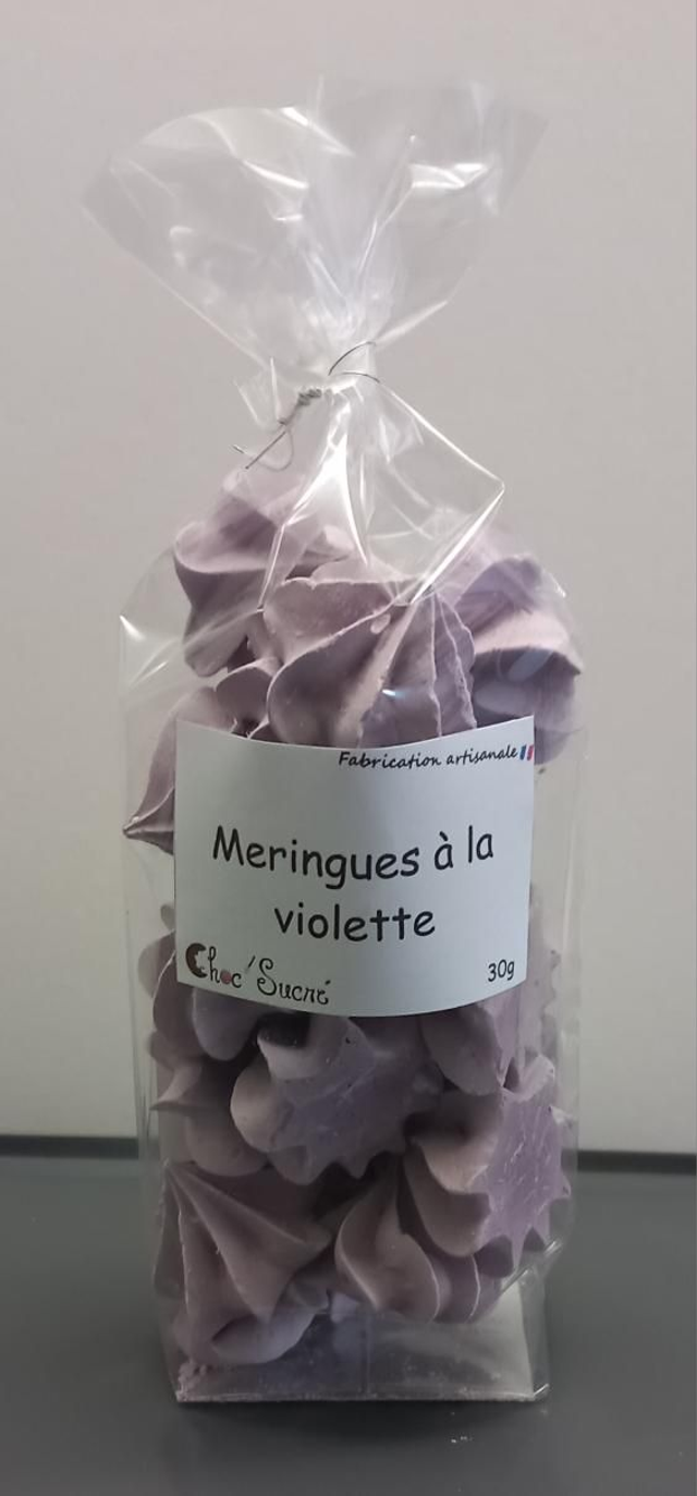 Ingrédients: blanc d'œuf, sucre, arôme naturel de violette, colorant.